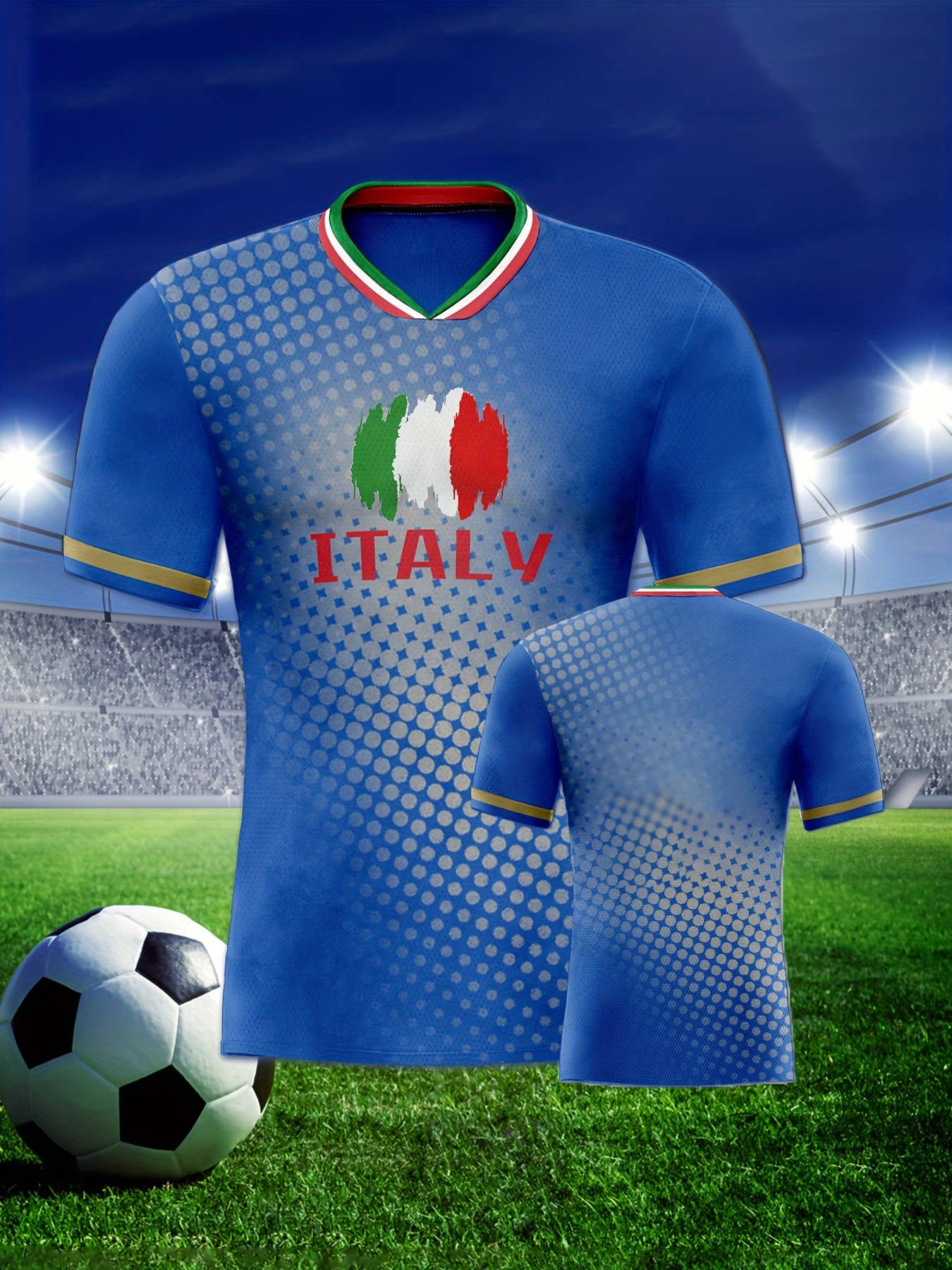 Women's Plus Size Italian Soccer Jersey - V-Neck, Short Sleeve, Breathable & Lightweight Polyester Sports Shirt with ITALY Flag Print, Moisture-Wicking Activewear for Fans & Players, Fan Apparel | Sporty Vneck | Knit Construction