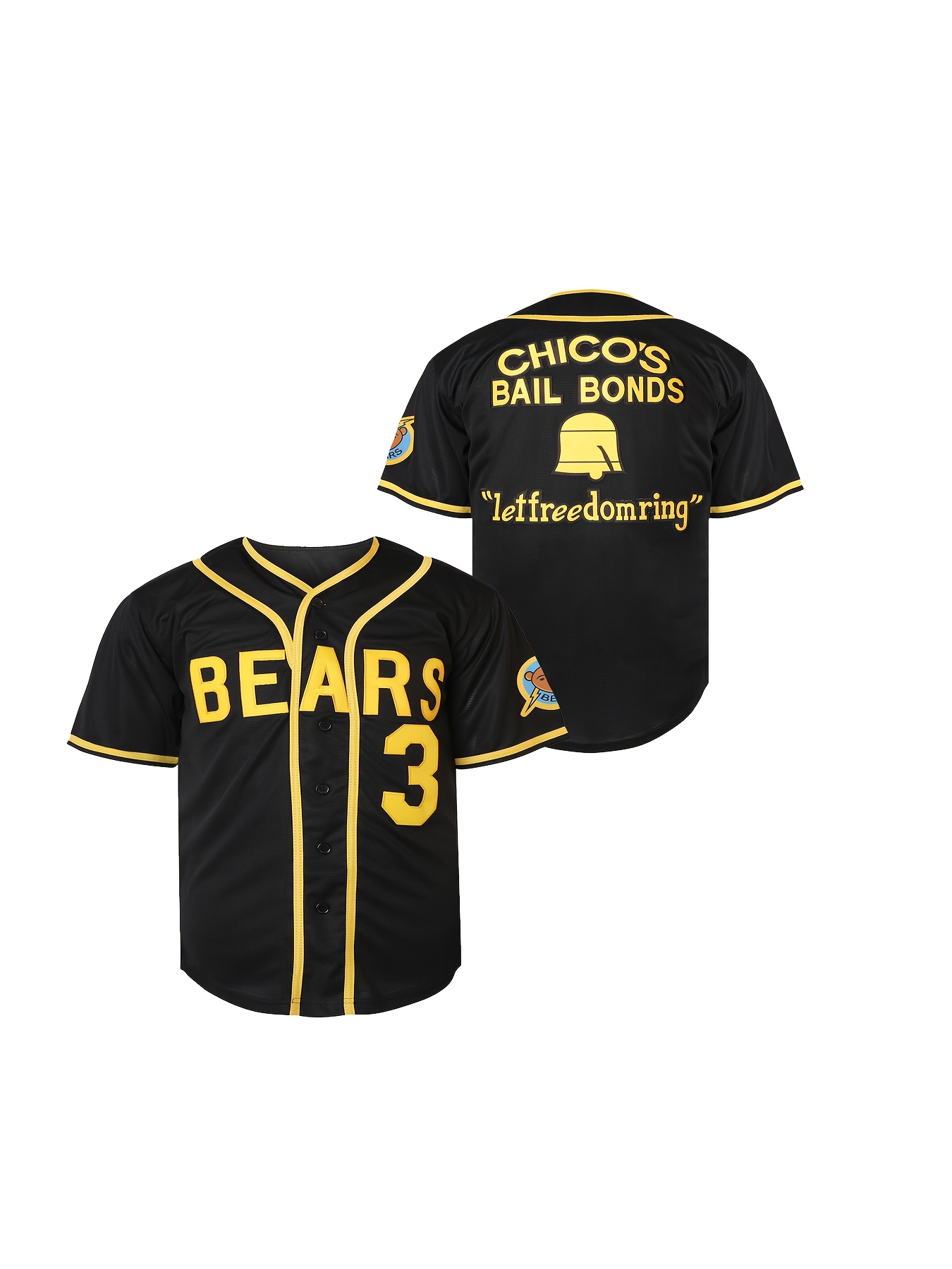 Boys's #3 Black Baseball Jersey with Embroidered Lettering - V-Neck, Button-Up, Polyester - Perfect for Sports & Casual Wear