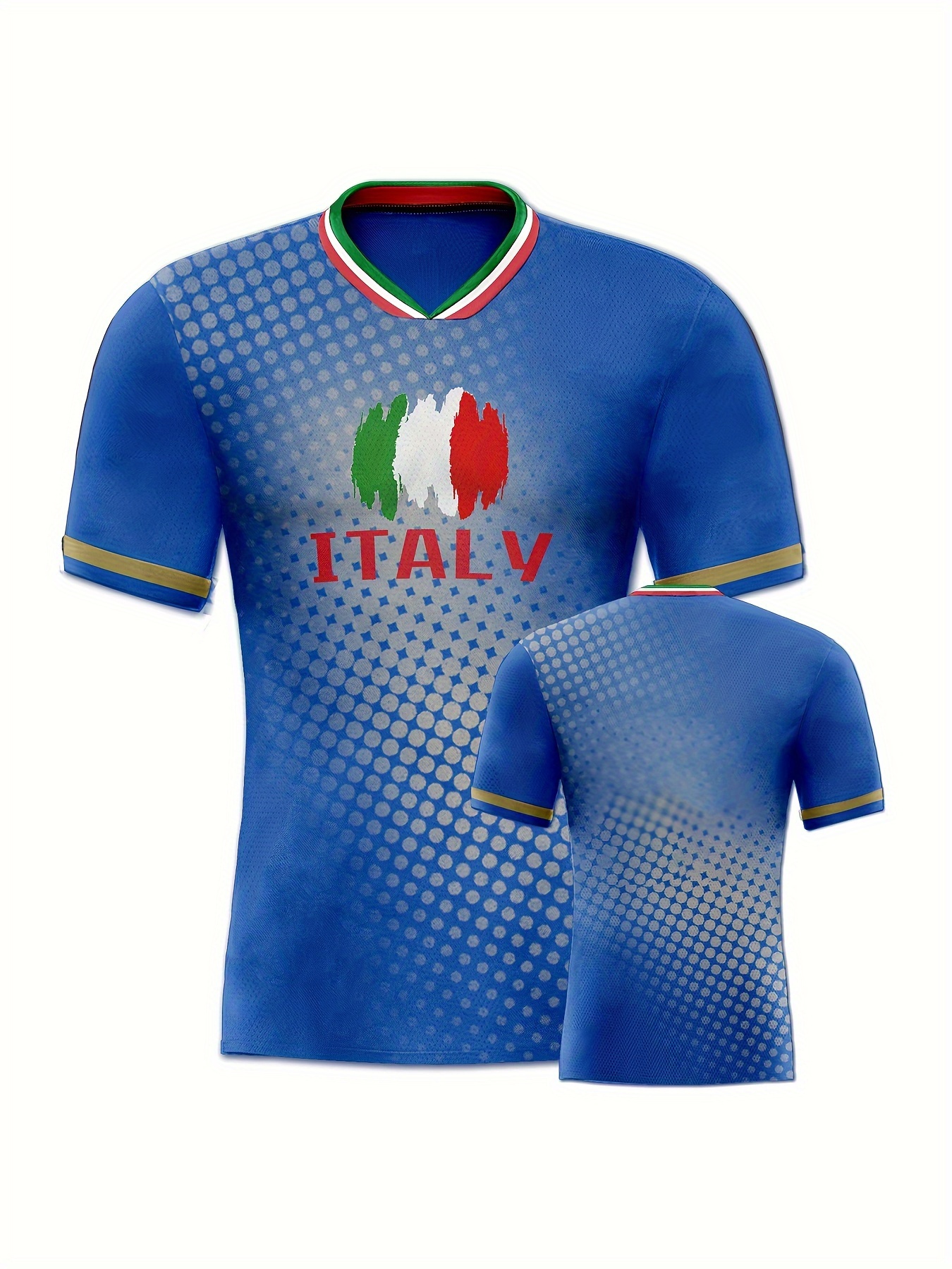 Women's Plus Size Italian Soccer Jersey - V-Neck, Short Sleeve, Breathable & Lightweight Polyester Sports Shirt with ITALY Flag Print, Moisture-Wicking Activewear for Fans & Players, Fan Apparel | Sporty Vneck | Knit Construction