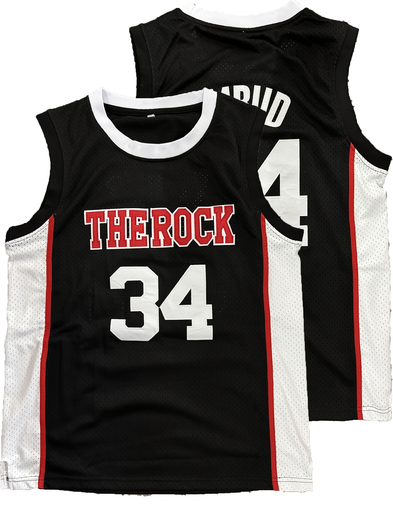 1pc Men'S Breathable Polyester Basketball Jersey, V-Neck Sleeveless Sports Top with Embroidered #34, Loose Fit Knit Fabric for Team Sports, Outdoor Activities, Parties & Casual Wear - Four Seasons