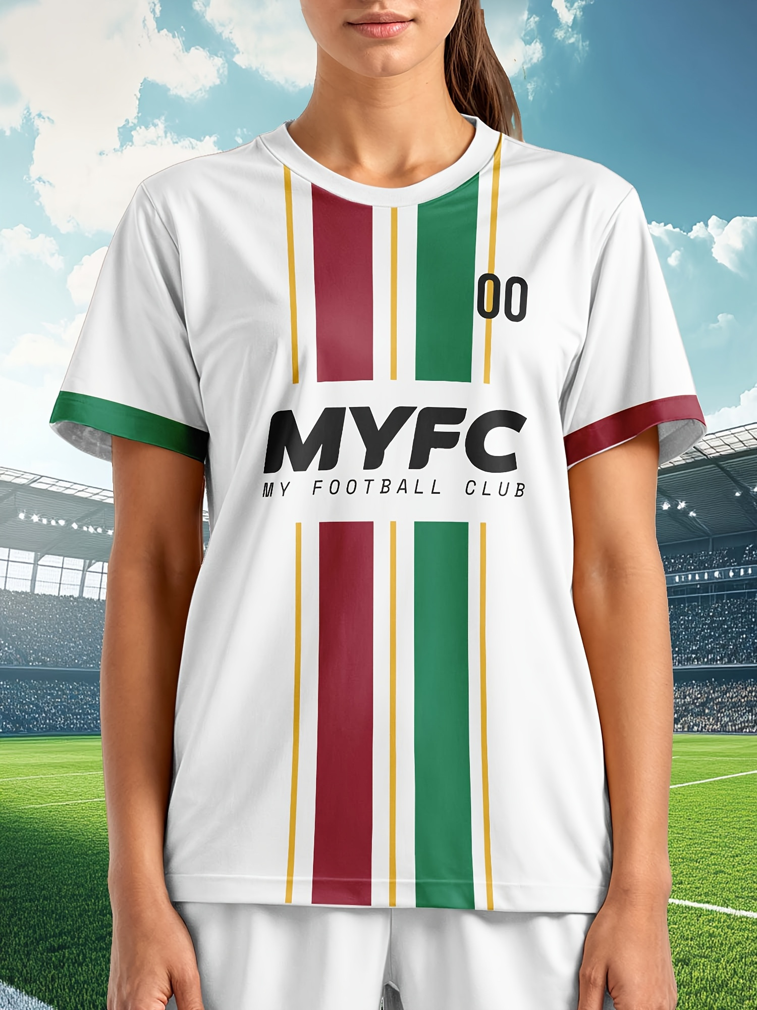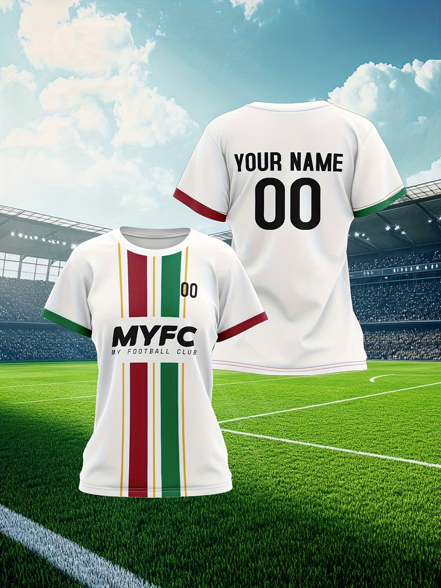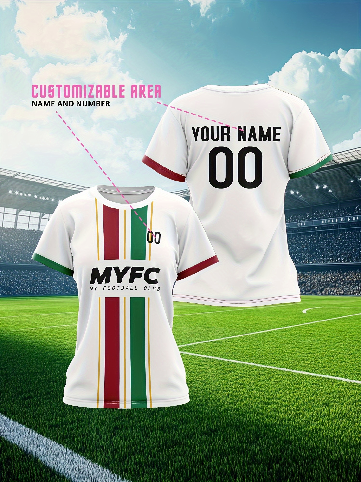 Personalized Women'S Plus Size Football Jersey - Customizable Team Name & Number, Soft Lightweight Breathable Fabric, Vibrant Soccer Stadium Print, Summer Outdoor Sports Jersey for Casual Wear, Soccer Jersey, PLUS SIZE