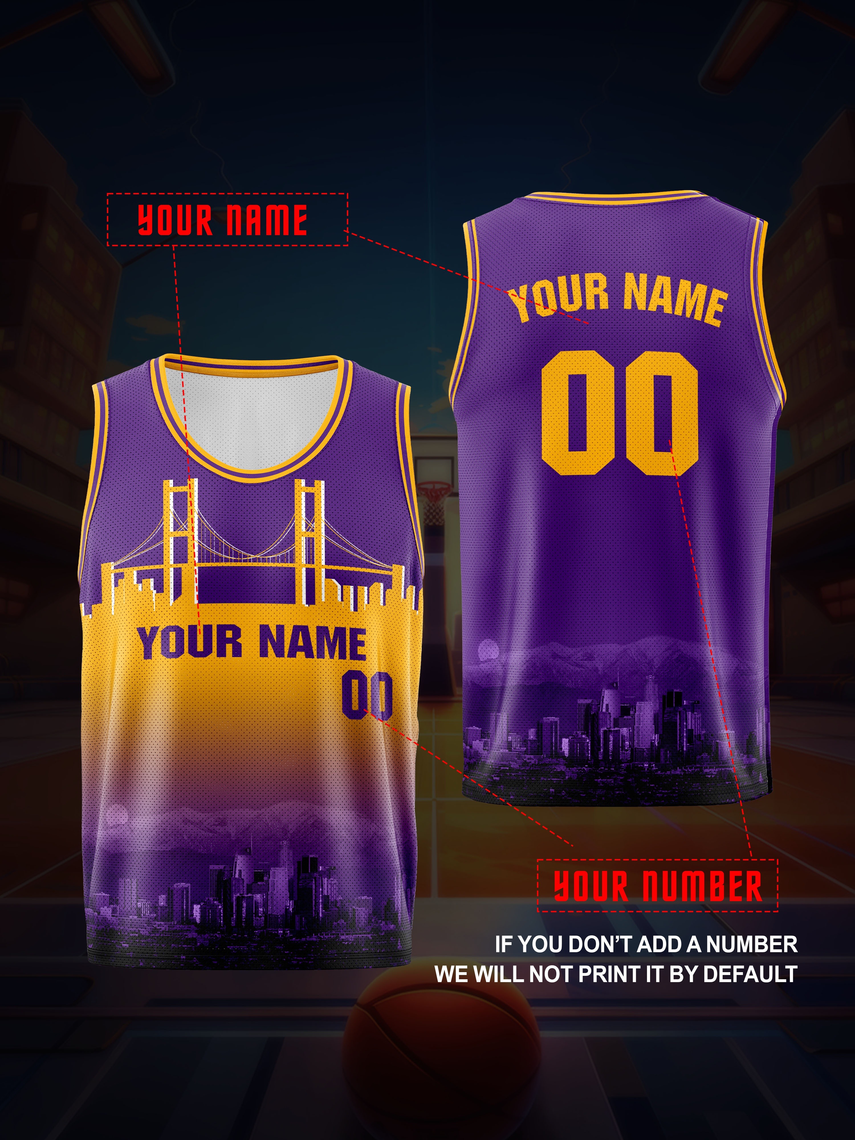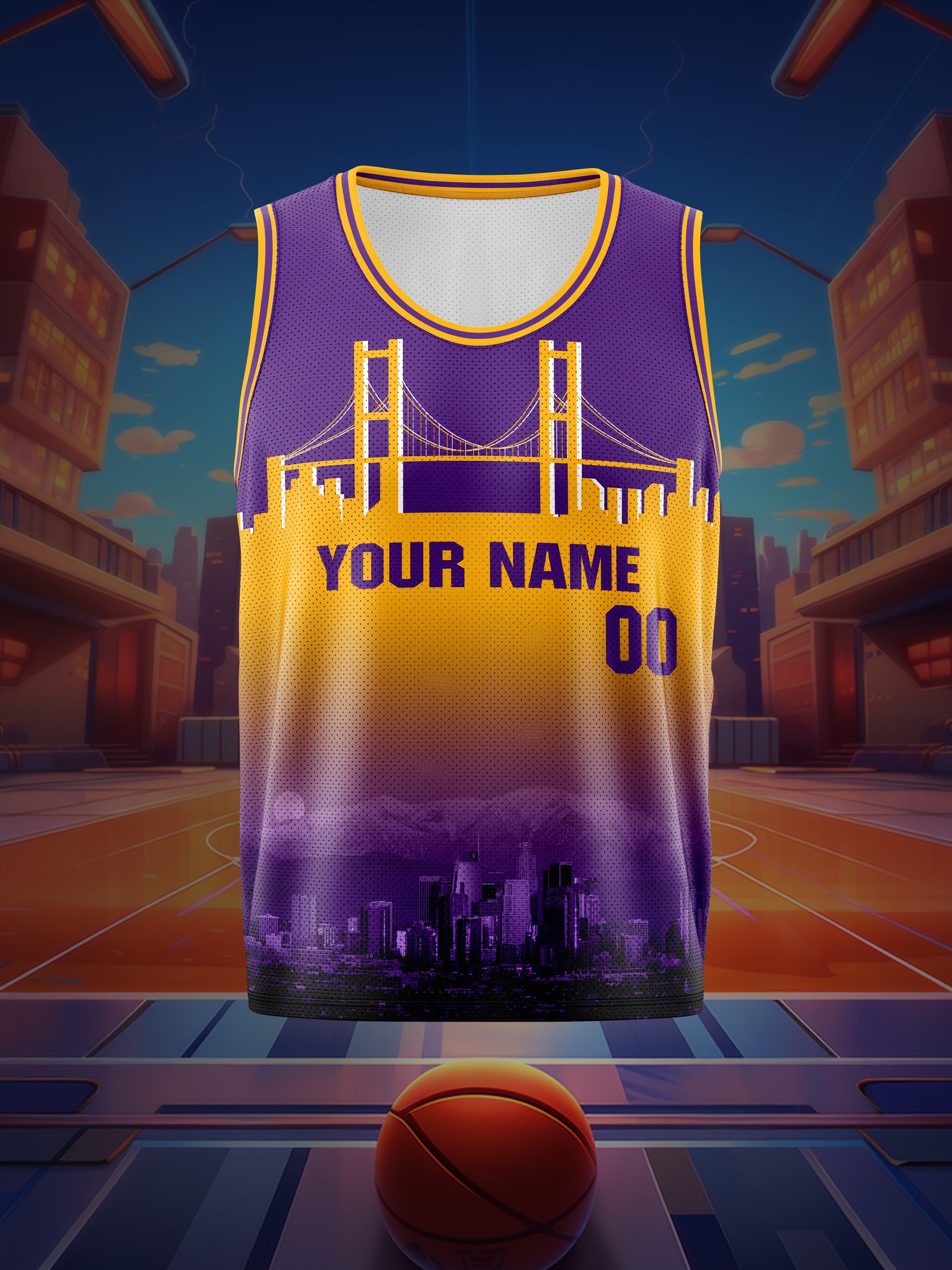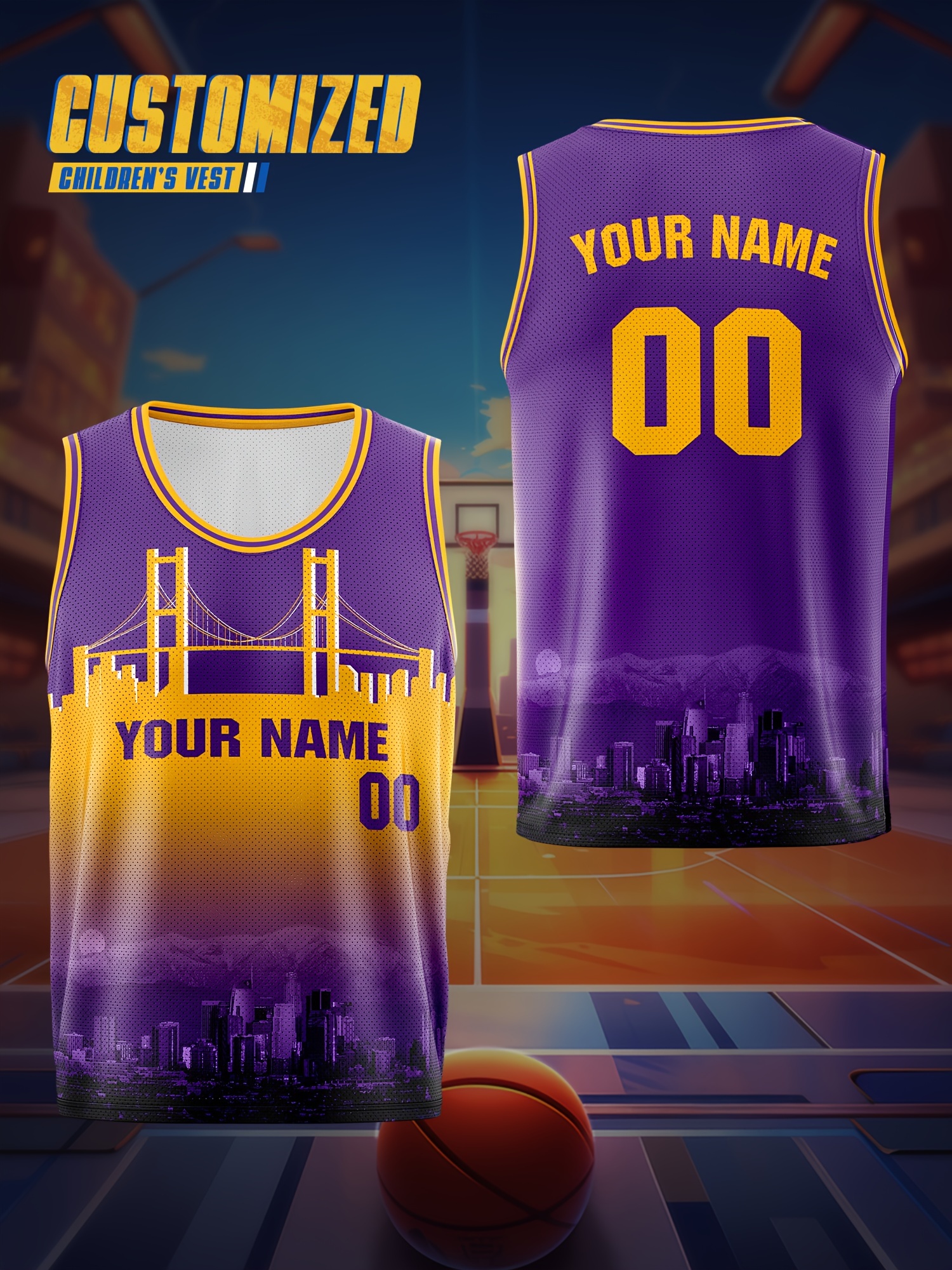 Boys Loose & Breathable Custom Sleeveless Basketball Jersey Shirt, Personalized Bridge Pattern Top For Sports & Exercise