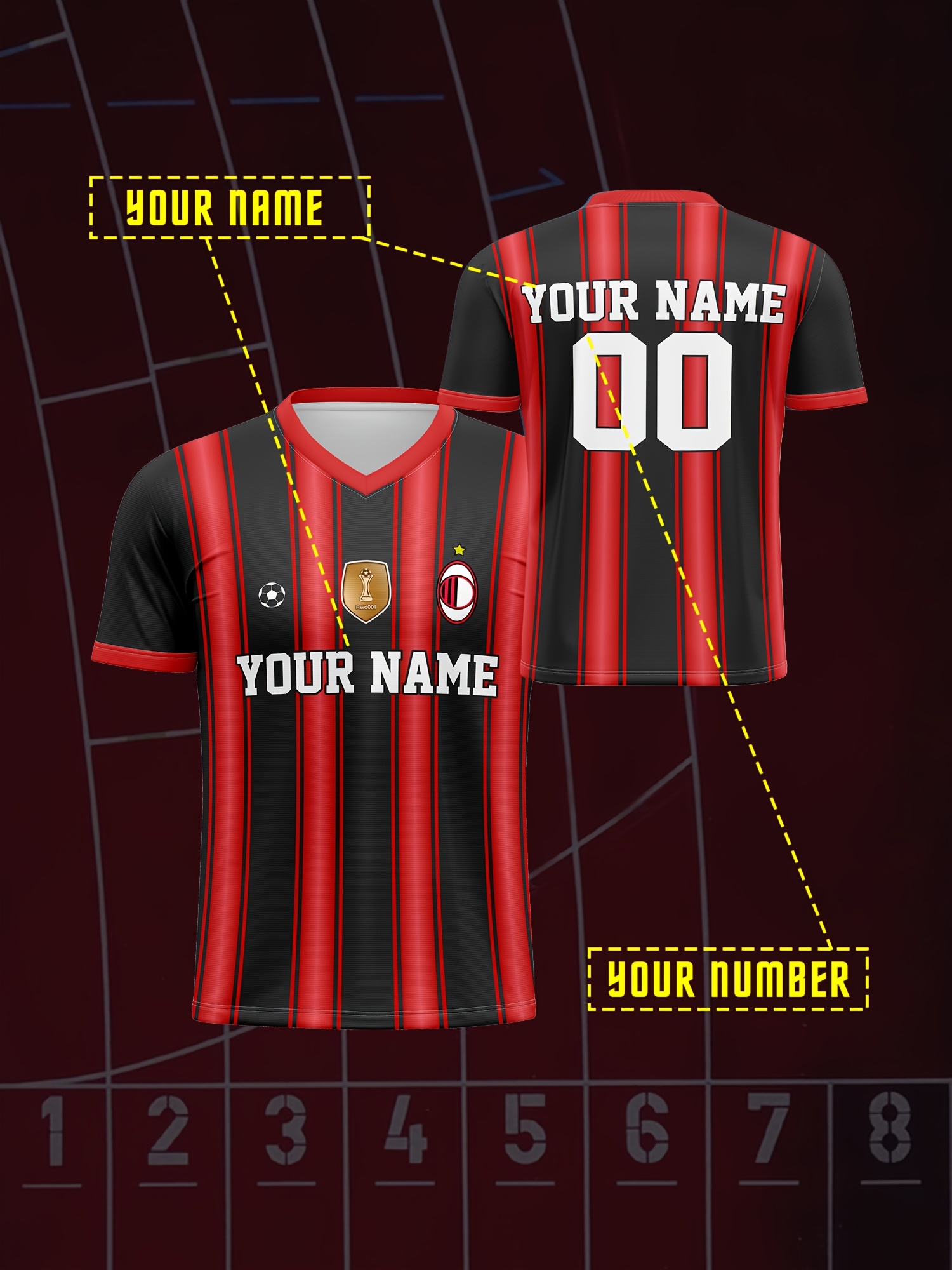 Custom Youngsters' Soccer Jersey - V-Neck, Personalized Name & Number, Comfort Fit for Sports & Casual Wear, Breathable Polyester, Machine Washable, 2024, Running