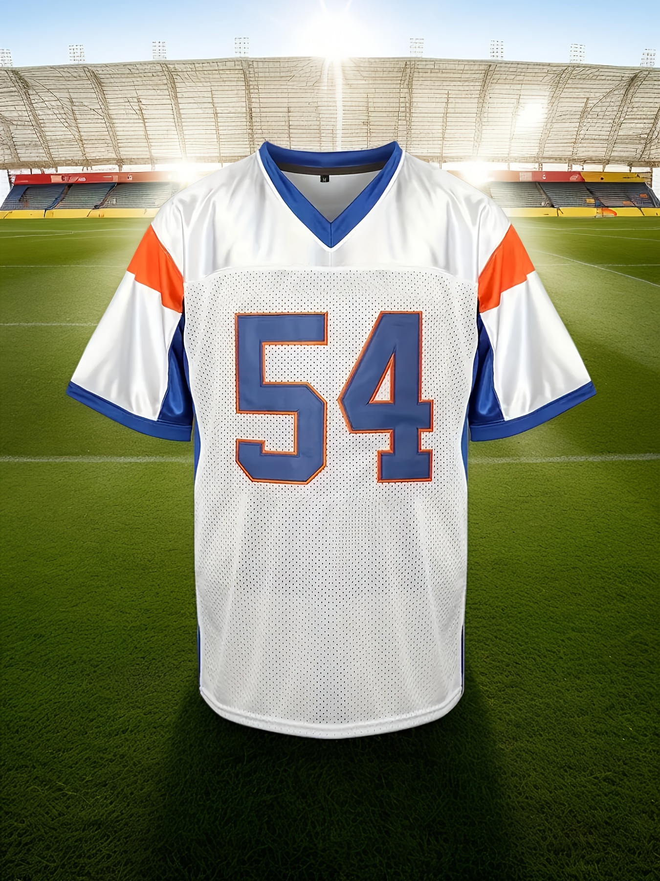 Men's #54 Embroidered Color-Block Rugby Jersey - Breathable, V-Neck Short Sleeve Track Shirt for Sports & Parties