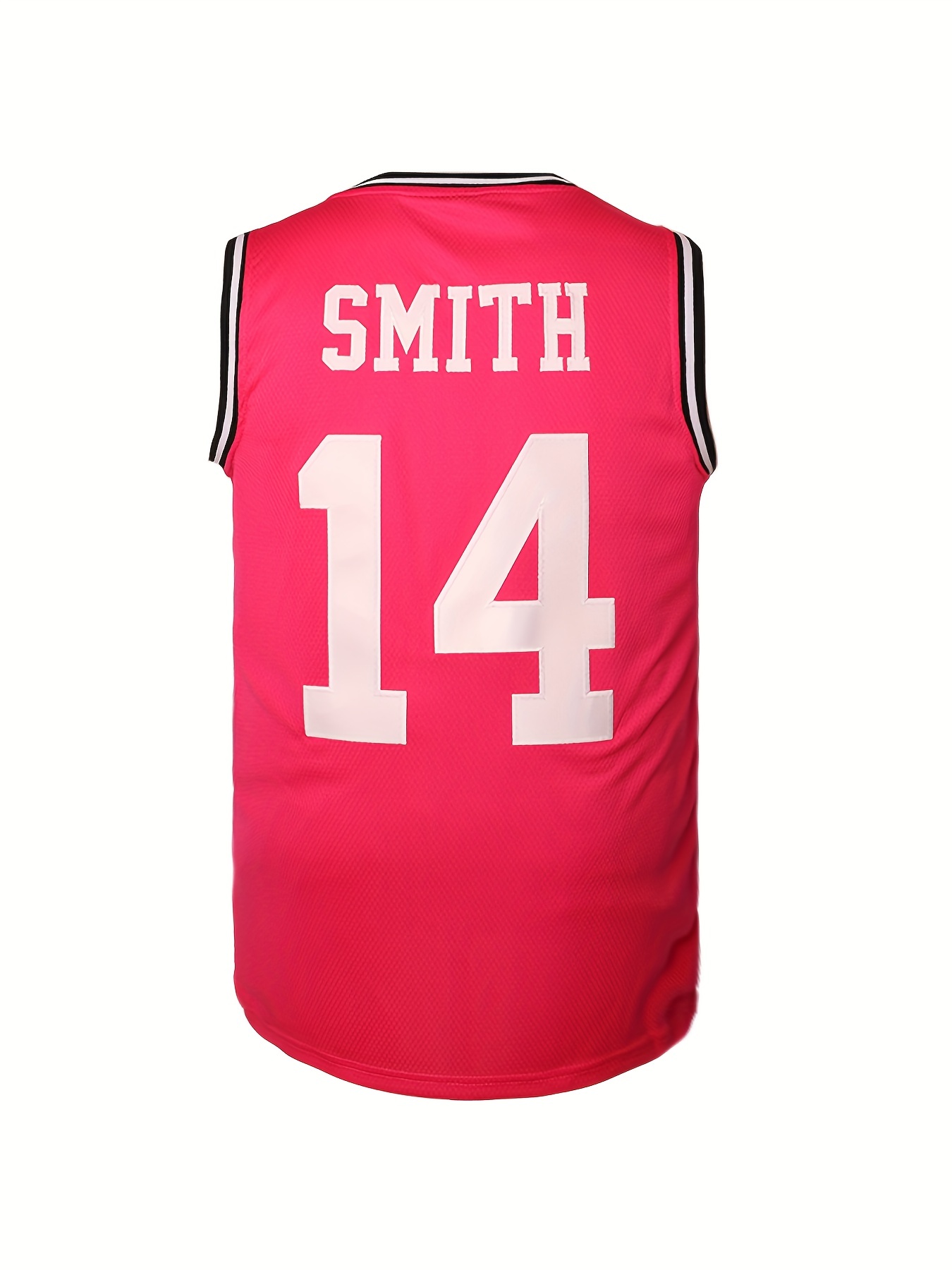 1pc Men'S Red Basketball Jersey - Polyester Sports Top with Embroidered Lettering & Number, V-Neck, Slight Stretch, Loose Fit for Team Sports, Parties, Halloween - Four Seasons Sweatshirt & Hoodie