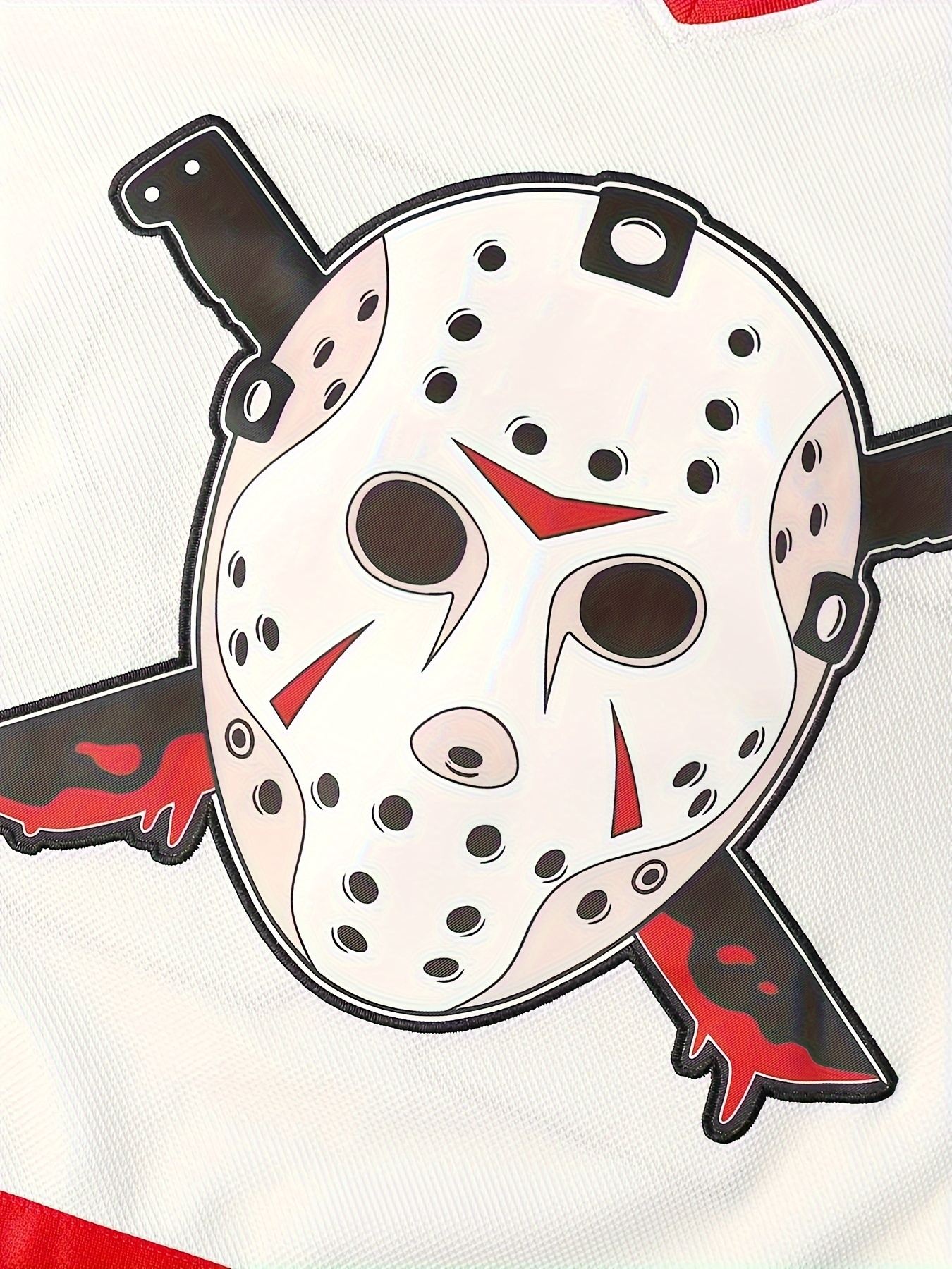 Men's #13 Voorhees Embroidered Hockey Jersey - Black & White, Polyester, V-Neck Captain's Sweatshirt with "C" Patch, Machine Washable for Year-Round Sports, Team Uniform|Sporty Look|Polyester Fiber