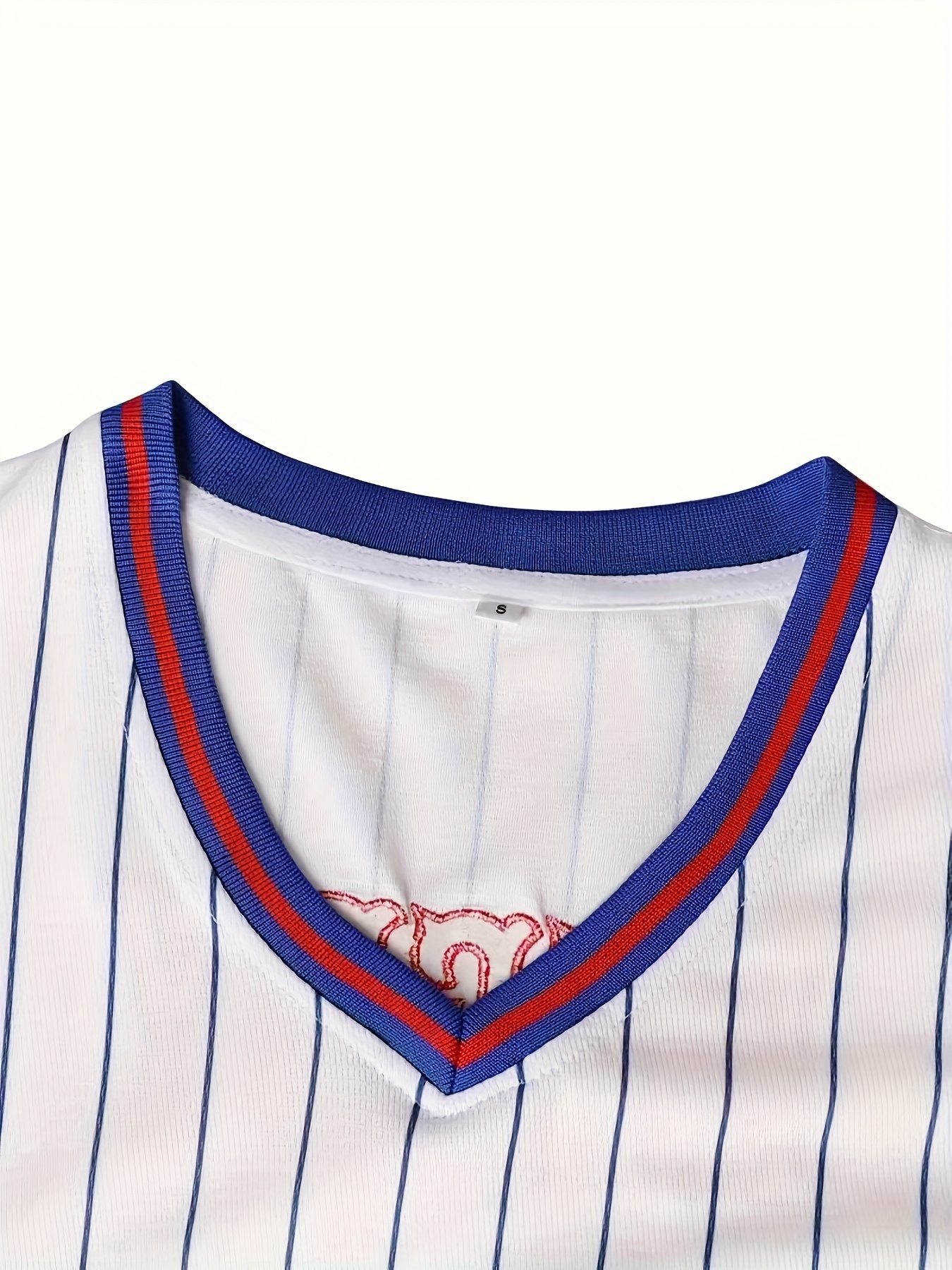 Men's #82 New York Baseball Jersey - V-Neck, Embroidered Name & Number, Striped Sleeves, Loose Fit, Polyester, Machine Washable - Perfect for Parties, Sports & Casual Wear