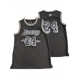Men's Black Embroidered #24 Basketball Jersey - Breathable Polyester, Loose Fit V-Neck, Short Sleeves, Perfect for Sports, Outdoor Activities, and Casual Wear, Outdoor Activewear | Vneck Top | Polyester Fabric
