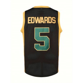 Men'S Embroidered #5 Black Basketball Jersey, Polyester V-Neck Sports Jersey with Slight Stretch, Loose Fit, for Adult Men, Four Seasons & Parties