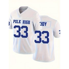 Men's White #33 Film Breathable Football Shirt, Sports V-neck Short Sleeve Training And Game Uniform, Embroidered American Football Shirt