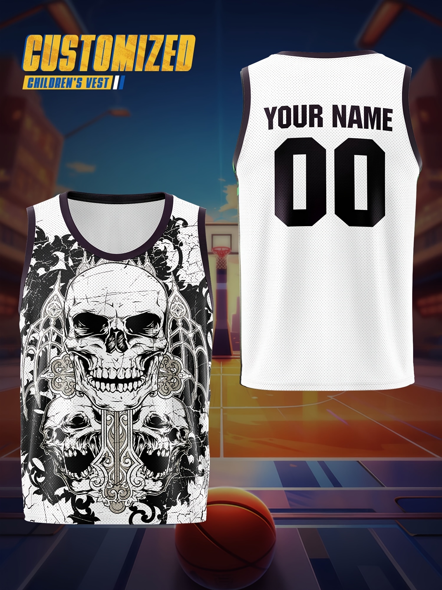 Children'S Customized Name And Number Basketball Sports Vest, Halloween Theme Suitable for Game Team Training Party, Comfortable Fit, Good Breathability, Outdoor Sports Running And Leisure