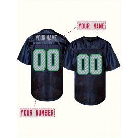 Women'S Plus Size Football Shirt - Personalized Name & Number, Breathable Soft Fabric, V-Neck Short Sleeve for Sports & Outdoor Activities, Black with Green Accents, Customizable Football Shirt, PLUS SIZE