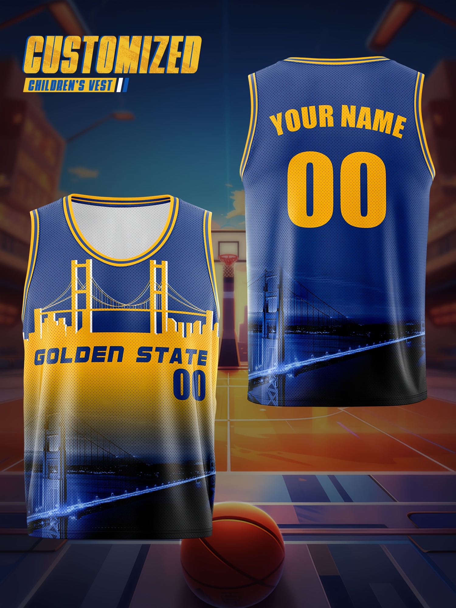 Custom Kids Basketball Jersey, Polyester 100% Knit Fabric, Breathable & Washable, Color Block All Over Print, Sleeveless Sports Vest for Boys & Girls, Casual & Training Wear, Outdoor Sports & Leisure, Spring/Summer/Fall - Loose Fit