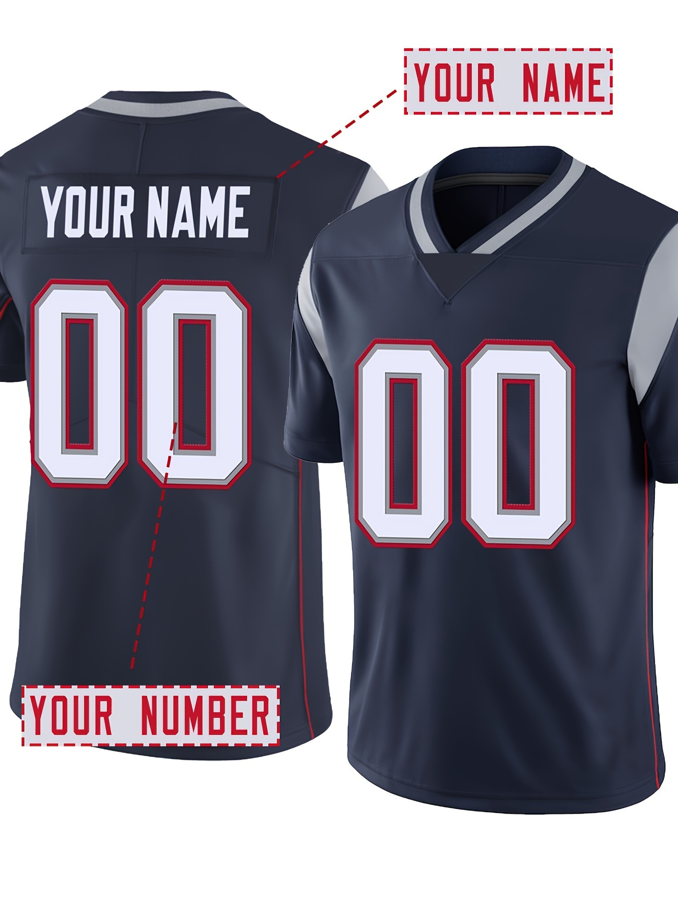 Customizable Football Jersey - Personalized Team Name & Number, Breathable V-Neck Design, Plus Size for Men & Women, Summer Sports Activewear with Team Logo, Football Jersey, Casual Sportswear, Comfortable Fit