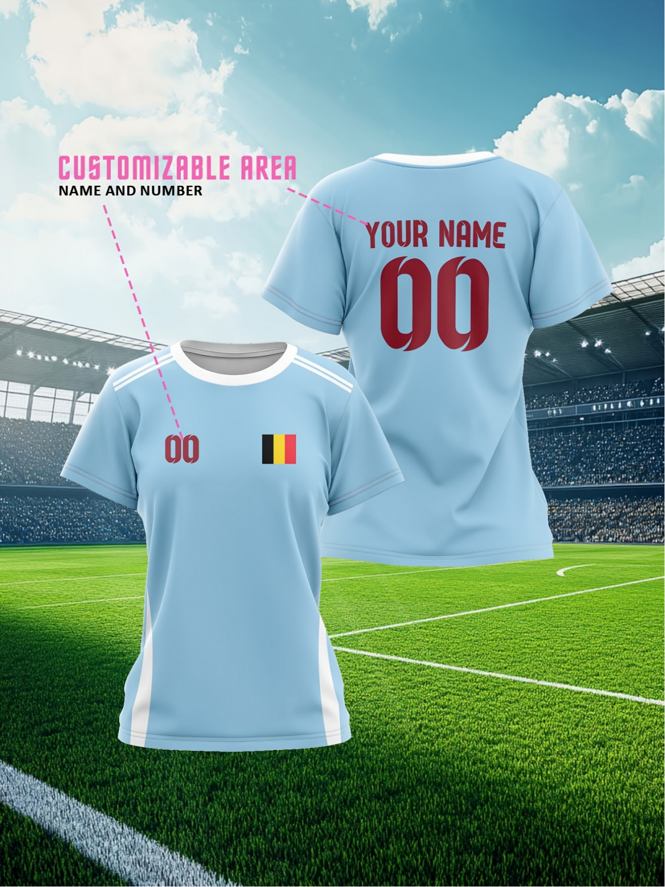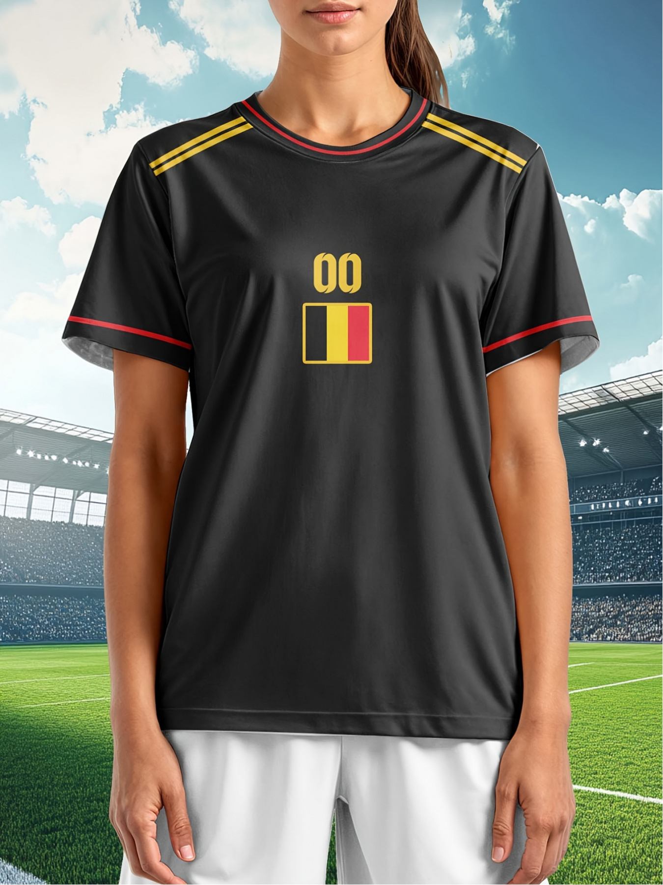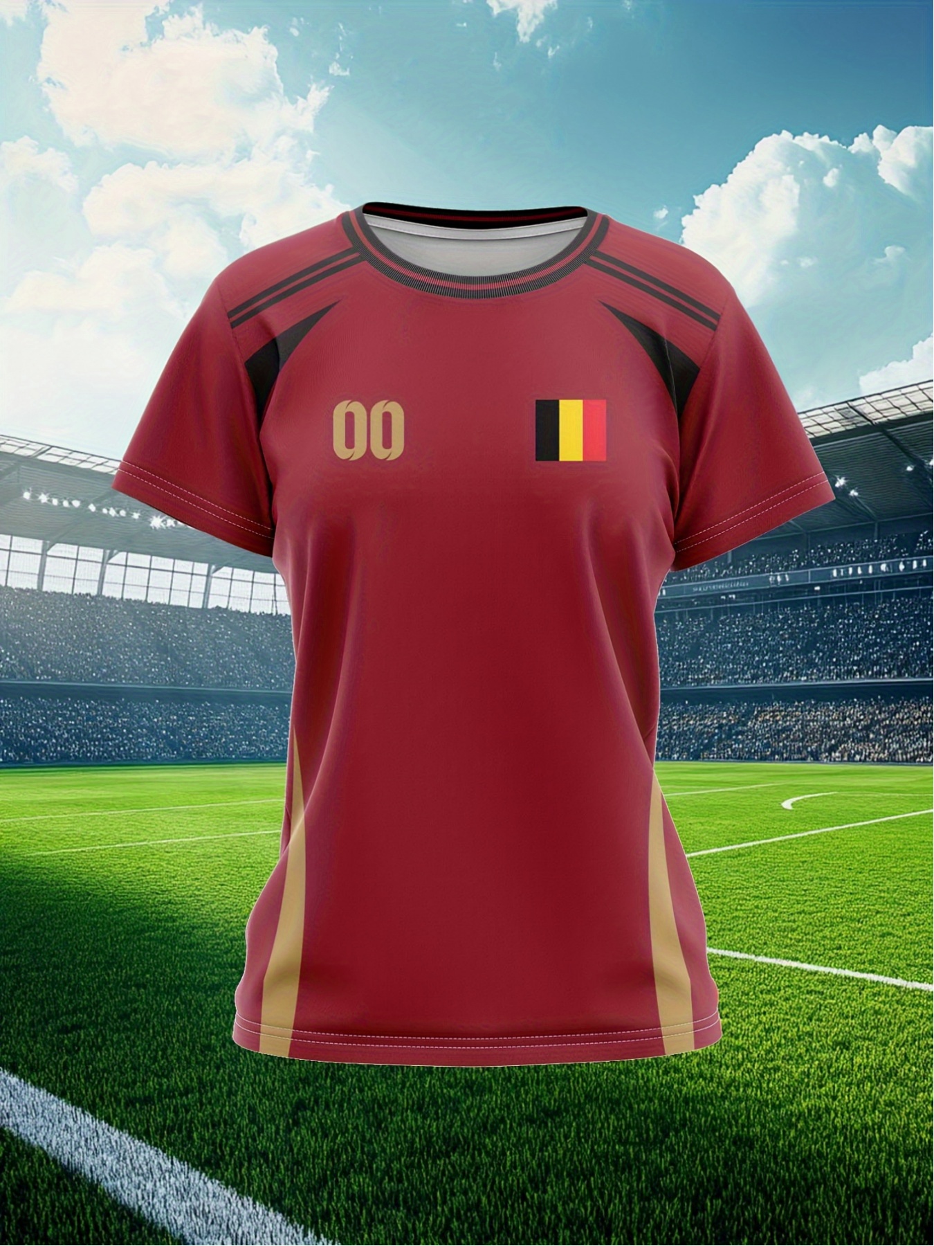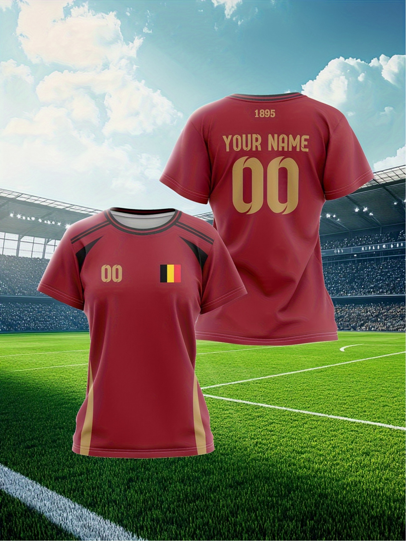 Customizable Plus Size Soccer Jersey - Personalized Name & Number, Red with Black Sleeves, Breathable Athletic Shirt for Team Sports & Outdoor Activities, Soccer Accessories, Team Sports Apparel, Dynamic Graphic Design, Durable Fabric Shirt