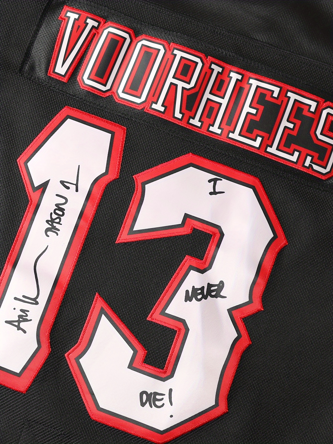 Men's #13 Voorhees Embroidered Hockey Jersey - Black & White, Polyester, V-Neck Captain's Sweatshirt with "C" Patch, Machine Washable for Year-Round Sports, Team Uniform|Sporty Look|Polyester Fiber