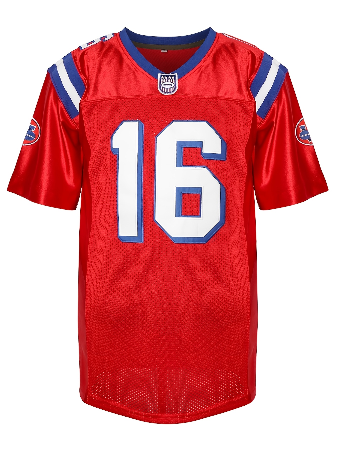 Men's #16 Red American Football Jersey - V-Neck, Name & Number, Polyester, Loose Fit for Sports, Parties & Team Activities