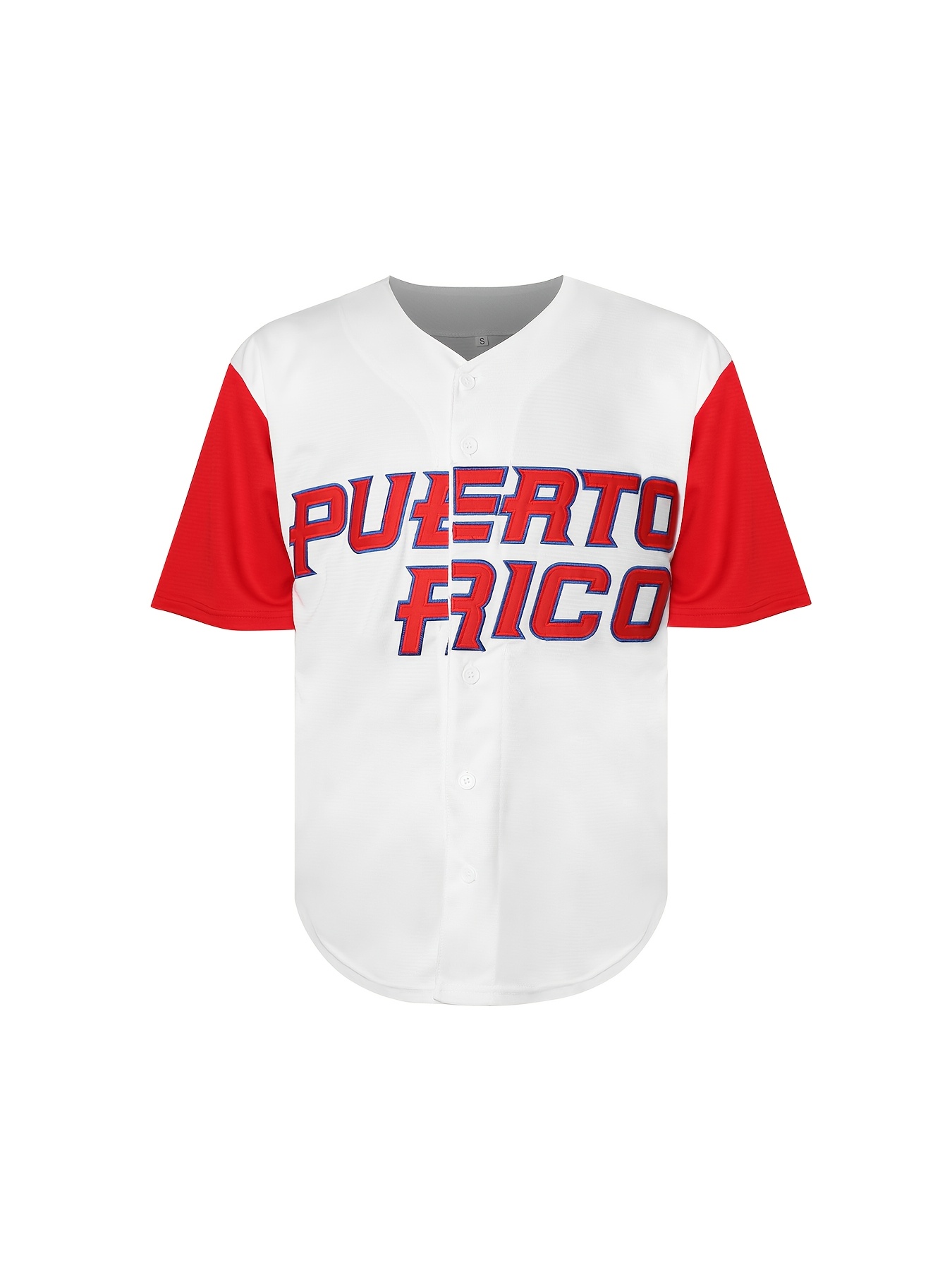 Men's Puerto Rico Baseball Jersey - Embroidered Number 1 & Name, White with Red Accents, 100% Polyester, Loose Fit V-Neck Button-Up for Sports, Halloween, Parties & Casual Wear, Puerto Rico Shirt