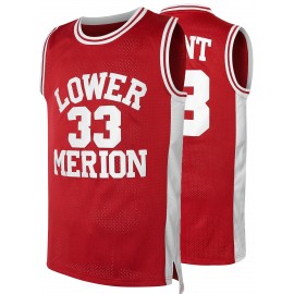 [Sports Uniform] Men's #33 "Lower Merion" Red Basketball Jersey - Breathable, Sleeveless, Embroidered Uniform Shirt with White & Black Stripes, Perfect for Sports & Outdoor Activities, Basketball Accessories